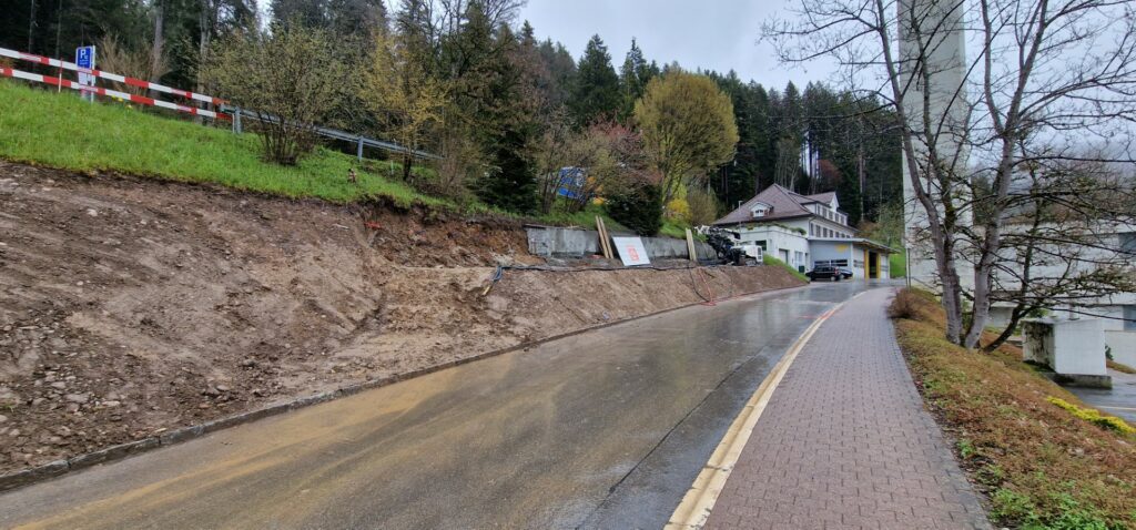 In den kommenden Wochen wird der Hang nun weiter etappiert abgetragen und fortlaufend durch die „mitwachsende“ Nagelwand gesichert.