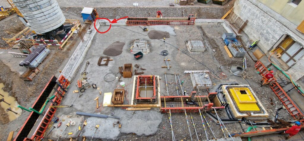Mit dem aktuellen Stand der Arbeiten ist der Moment gekommen, diese Zeitkapsel am vorgesehenen Ort (siehe Markierung) in das Fundament einzubringen: