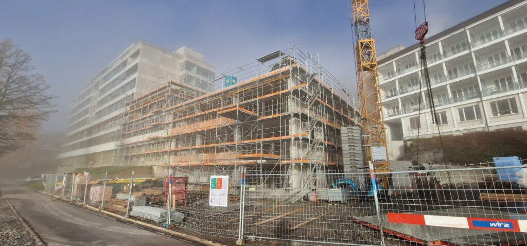 Mit dem physischen Start des Bauprojekts im April 2023 fand die jahrelange Planungsphase einen ersten Höhepunkt; gestartet wurden die Teilprojekte „Parkplatzerweiterung“ sowie „Sockelgebäude“: