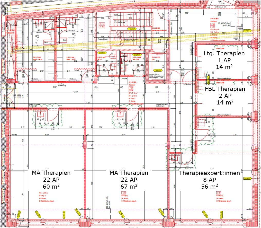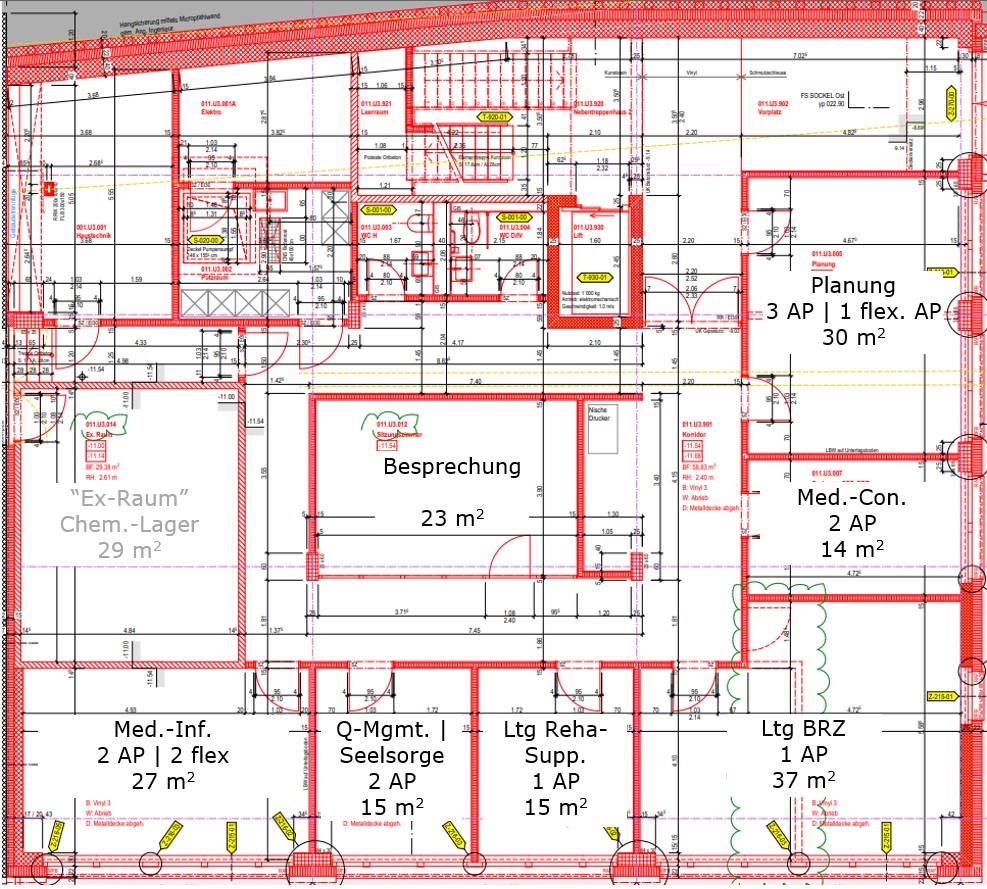 Sockelgebäude 3. Untergeschoss: Leitung BRZ | Reha Support | Therapieplanung