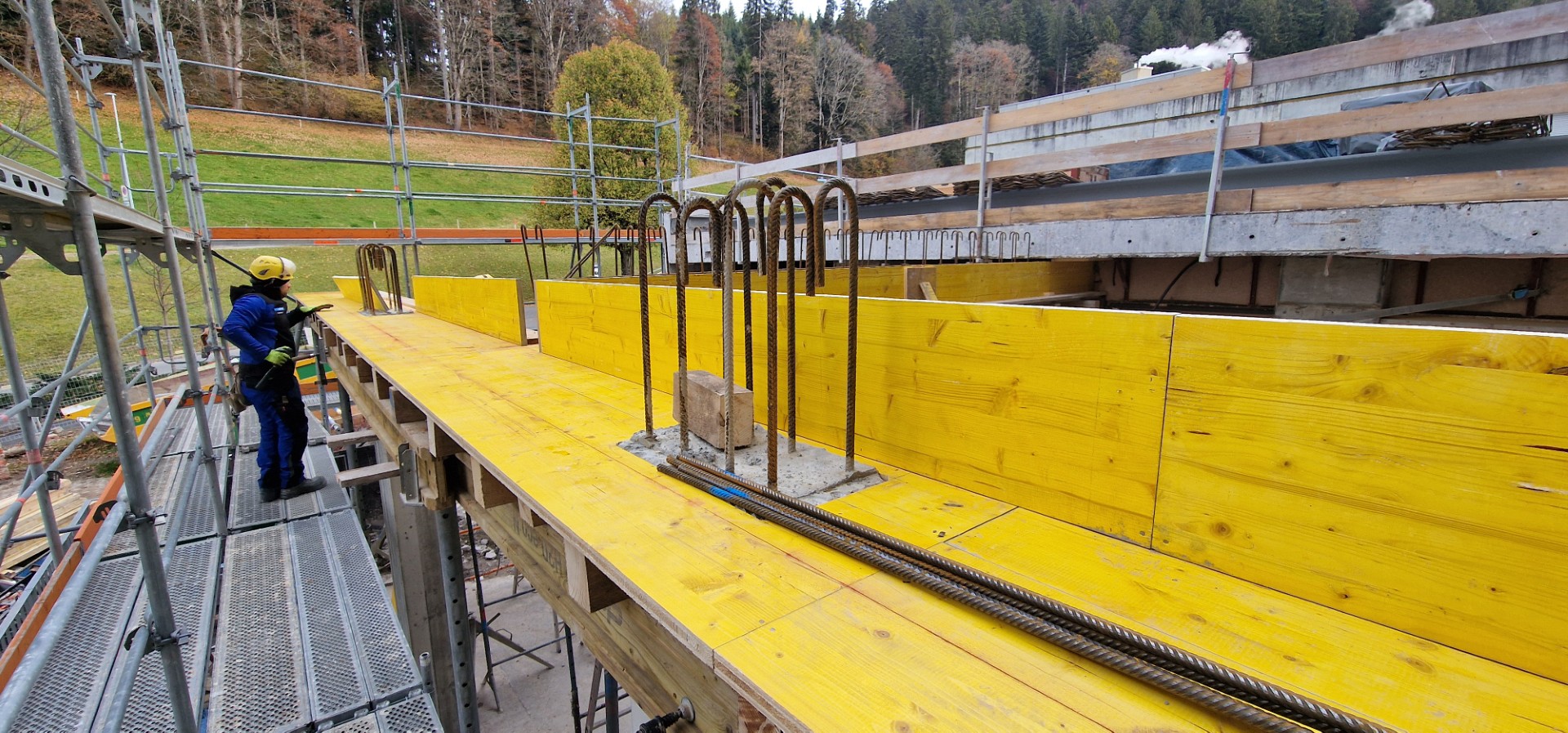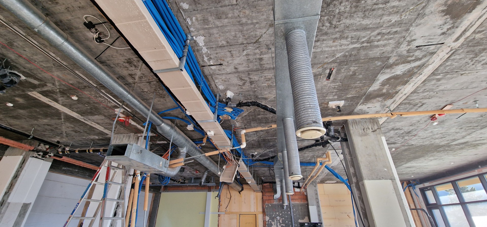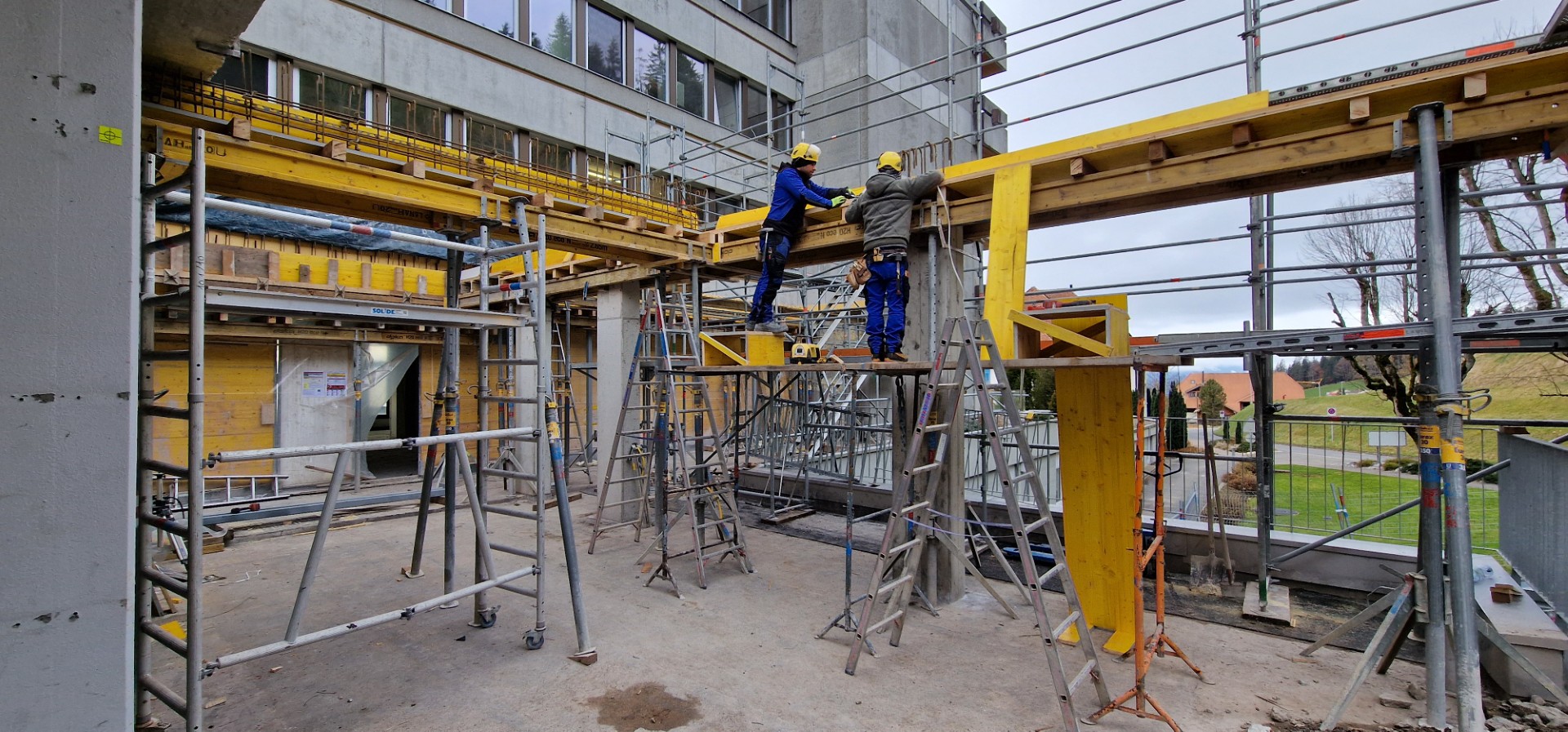 In den kommenden Wochen wird Aussen an der Fertigstellung des neuen (Haupt-)Eingangs weitergearbeitet, während im Innern der Ausbau im Bereich der Westseite des Gebäudes im Zentrum der Aktivitäten steht.