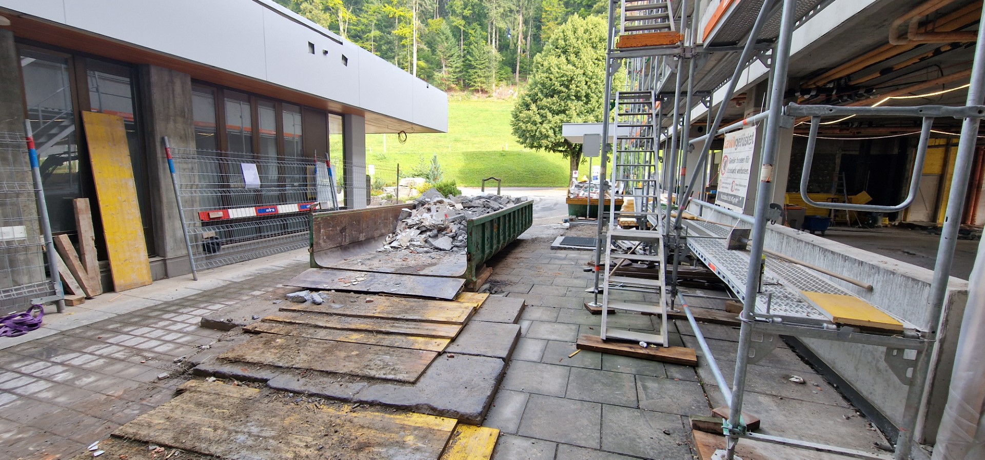 Von den 5 Teiletappen dieser Phase sind mittlerweile 3 abgeschlossen und in voraussichtlich zwei Wochen starten mit der Fertigstellung des Pavillons und kurz darauf mit dem Verschliessen des alten Eingangs die beiden letzten Etappen 3.4 und 3.5: